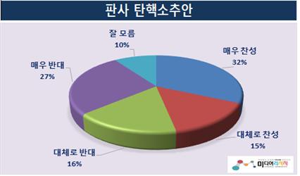 여론조사 전문기관인 미디어리서치가 2월 3일에 발표한 여론조사에서'여당에서 발의한 판사 탄핵소추안'에 대한 질문과 관련해 찬성 46.9% 〉 반대 43.5%, 잘 모름 9.6%로 조사됐다.