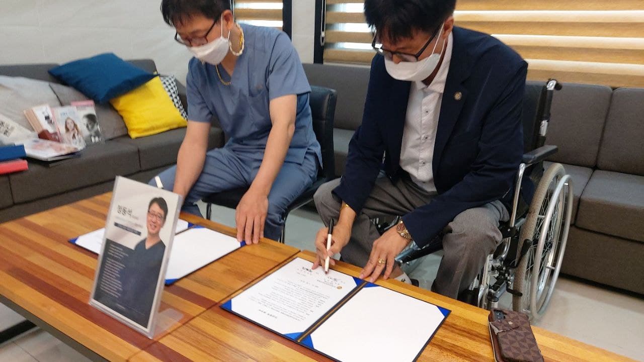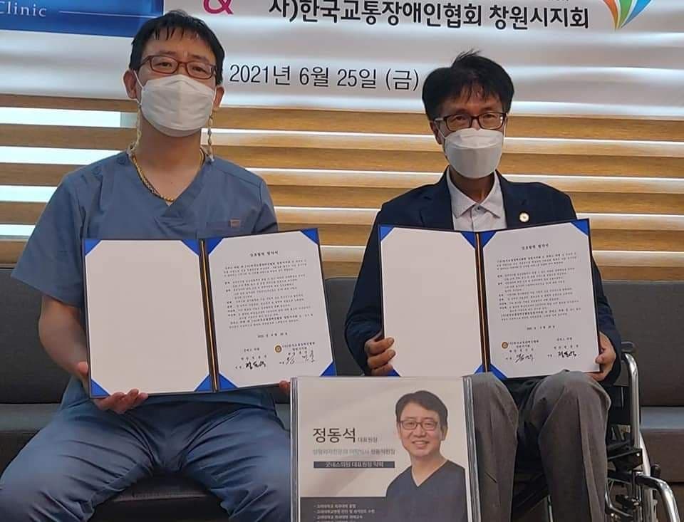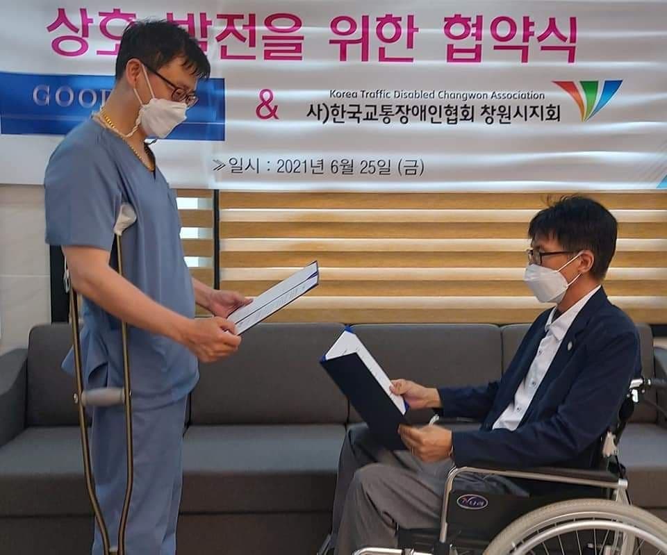 [시사우리신문]굿네스의원(원장 정동석)과 (사)한국교통장애인협회 창원시지회(회장 홍민식)이 지난 6월 25일 오후 굿네스의원 본점에서 상호 우호증진과 사회공헌 활동의 나눔 봉사이념에 함께하고 지역사회 의 신뢰를 바탕으로 상호발전을 위한 협약서를 체결했다.