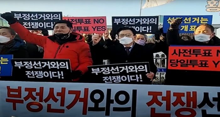 이어"그러나 임시사무소는 아무런 법적 근거가 없다.선관위 조직이 비밀조직이라니요?"라며"지난 4.15총선에서도 엄청난 부정선거가 자행되었는데, 이번에는 아예 처음부터 작정하고 있다"고 성토했다.