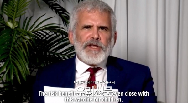 위험/편익 분석은 명백합니다. 백신접종에 따른 이익은 없고 명백한 위험만 있습니다.아버지이자 할아버지로서 제가 여러분들에게 권하고 싶은 것은 자녀들을 보호하기 위해 저항하고 싸우라는 것입니다. (이상 로버트 말론 발언 번역 )