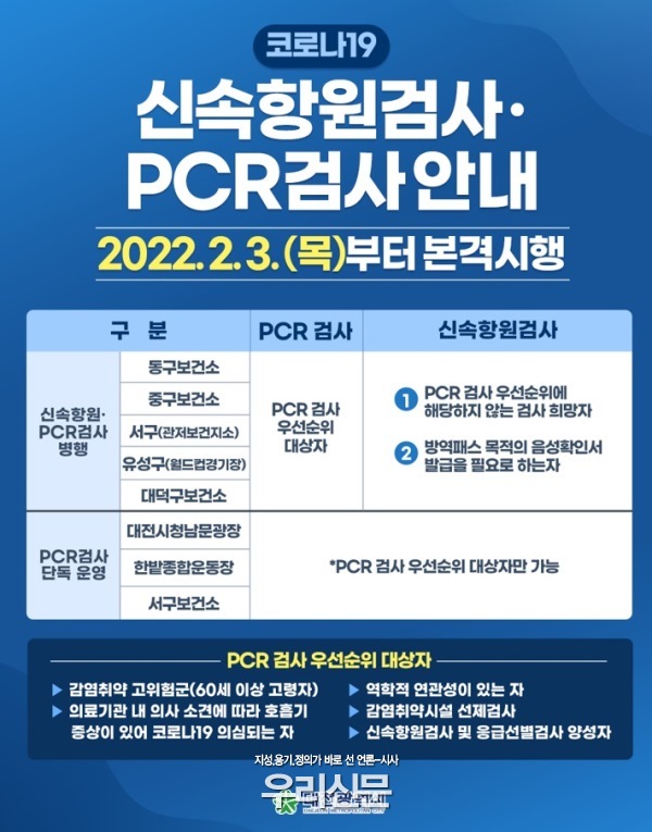 ▲ 대전시, 오미크론 확산에 따른 새로운 코로나 검사체계 시행 ©시사우리신문편집국