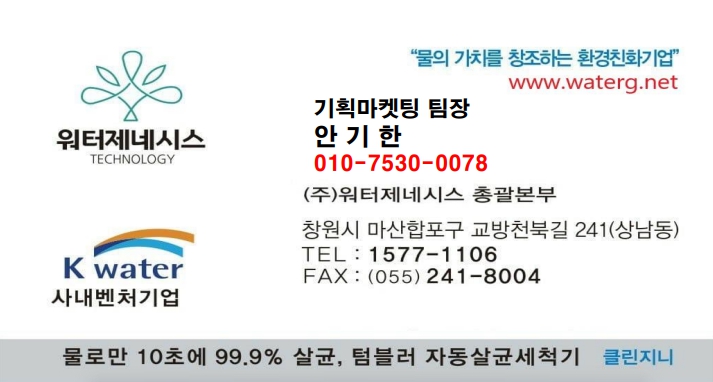 (주)워터제네시스 총괄본부 1577-1106 또는 010-7530-0078
