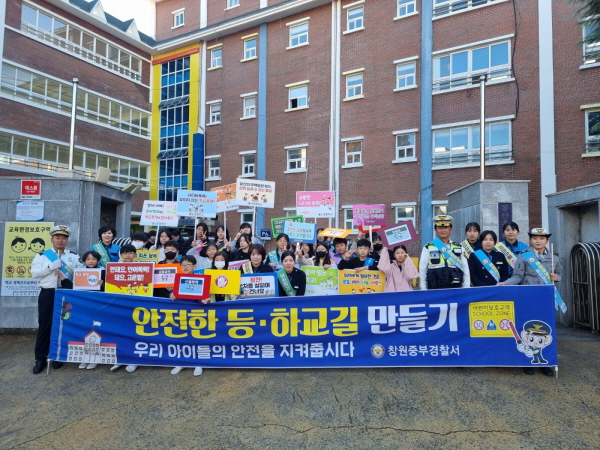 [시사우리신문]창원중부경찰서(서장 박중희)는 지난 17일 오전 8시부터 50분까지 창원동산초등학교 후문 일원에서 경찰관 5명, 교장 등 학교 관계자 5명, 유관단체인 녹색어머니회회원 10명 등 20명이 참석한 가운데 어린이 교통사고 예방 및 안심통학로 조성을 위한 스쿨존 교통안전 캠페인을 개최했다고 밝혔다.