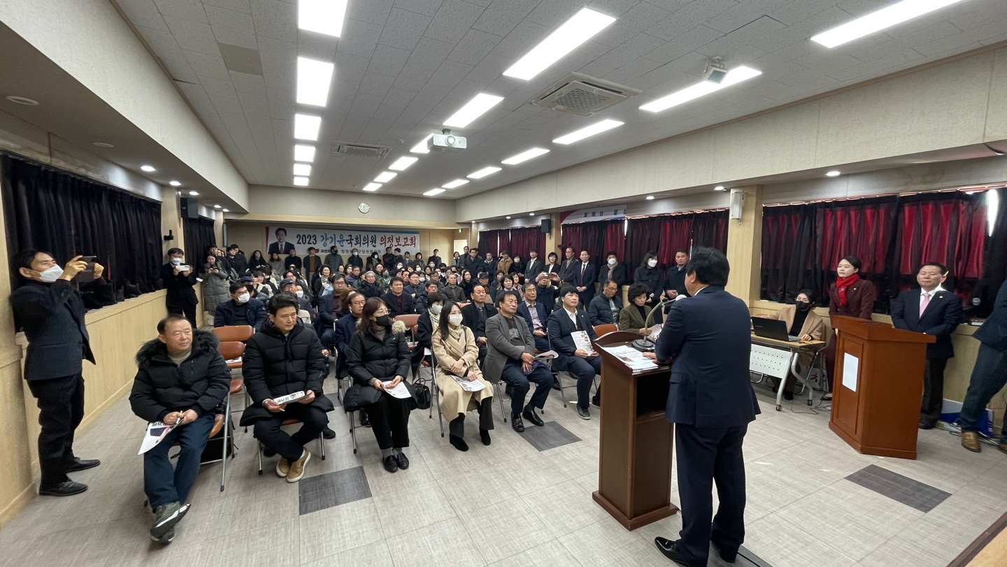 [月刊시사우리]국민의힘 강기윤 국회의원(국회 보건복지위 간사,경남 창원시 성산구)은 지난 12월 26일 상남동을 시작으로 사파동과 웅남동에 이어 27일에는 가음정동,중앙동,성주동 등 창원 성산구 각 동별로 찾아가는 의정보고회를 개최했다.