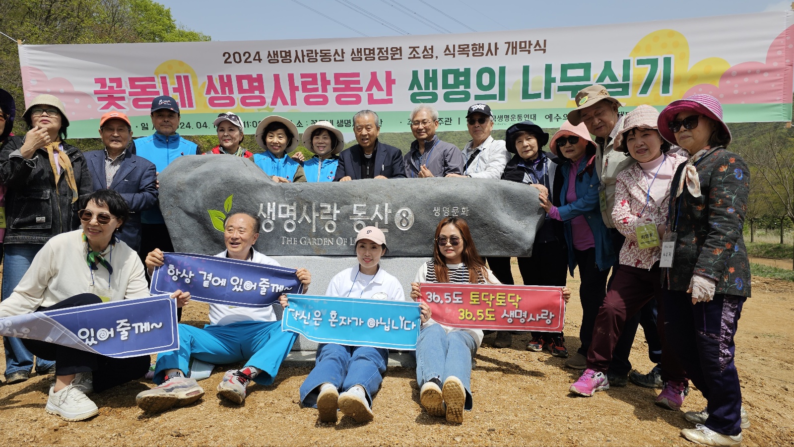 이날 생명나무 심기 식목일 행사에는 조성철 한국생명운동연대 상임대표,김대선 한국종교인연대 상임대표,임삼진 한국환경조사평가원 원장,박인주 나눔과운동본부 이사장,이해숙 서울꽃동네사랑의집 원장 등 여러 단체들이 참여해 꽃동네가 함께하는 식목행사인 ‘생명사랑 동산조성’을 위해 음성 꽃동네 오웅진 신부님과 함께 실시했다.