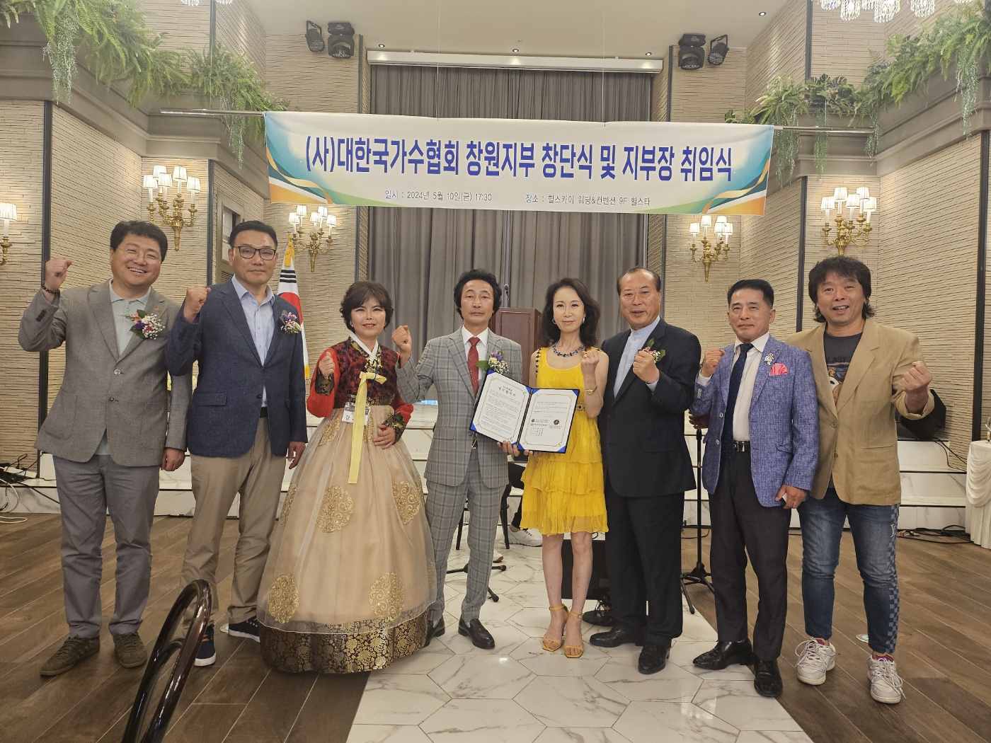 이날(사)대한국가수협회 창원지부 창단식과 함께 신임 이상봉 지부장 취임식이 진행되면서 소속 회원들의 다양한 문화예술 공연을 펼쳐 내빈들의 많은 박수 갈채를 받았다.