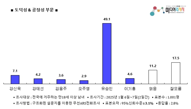 | 유승민 후보, 차기 대한체육회장 적합도 49%…타 후보에 비해 독보적 1위[미디어리서치] (0) | 2025.01.10 |